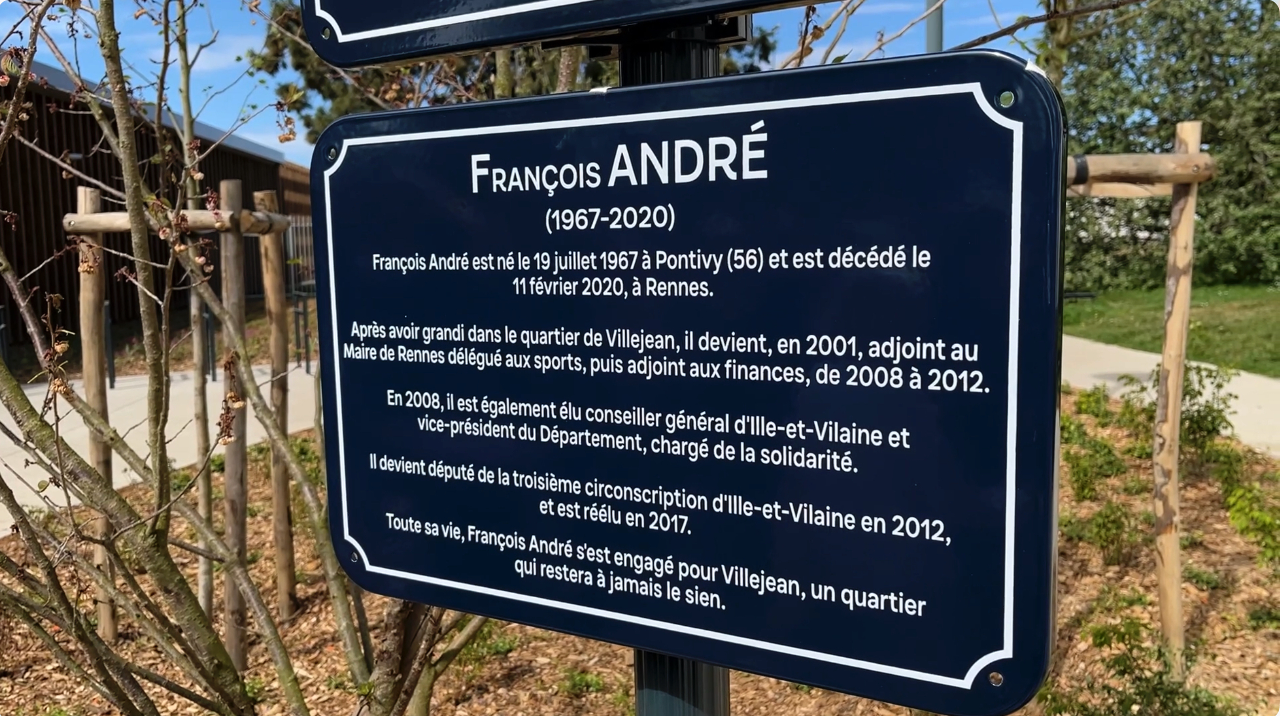 La mémoire de François André est aujourd'hui gravée dans le paysage urbain rennais. Un parvis porte désormais son nom, situé à proximité de la nouvelle piscine.