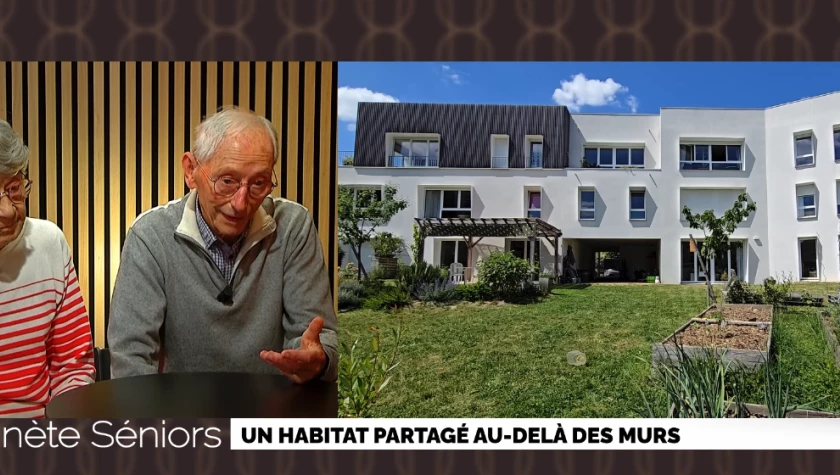 Un habitat partagé au-delà des murs - Il y a 10 ans, Louis et Michèle Veillard décident de vivre en habitat participatif intergénérationnel. A 81 et 75 ans, alors qu'ils vivent en maison individuelle, ils prennent conscience qu'afin de pouvoir rester en autonomie chez eux, il va falloir trouver un autre mode d'habitat. 7 ans plus tard, ils intègrent un logement partagé avec 14 autres foyers de tout profil. Ils nous expliquent pourquoi ce choix, leur vie au quotidien et comment ils ont même décidé de partager une chambre avec leur voisin.